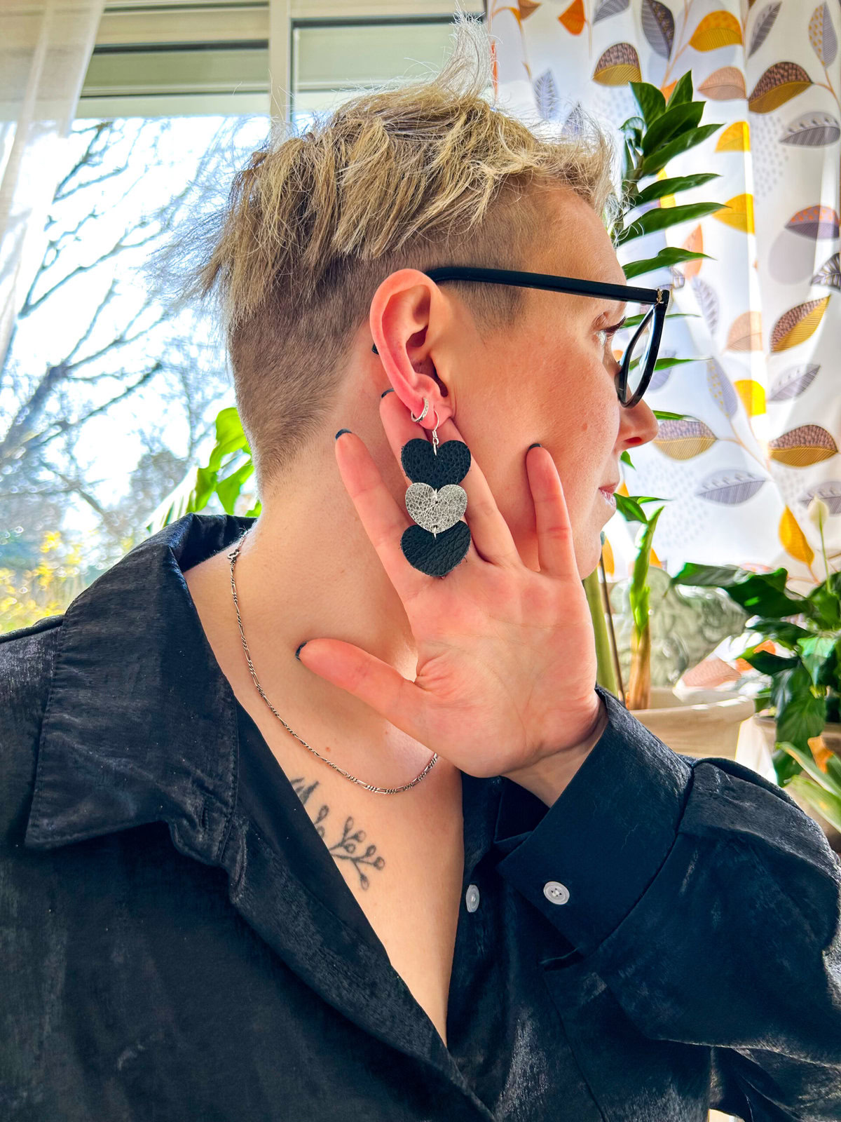Offrez à vos oreilles une touche unique et éthique avec nos boucles d’oreilles en cuir, conçues et fabriquées à la main dans notre atelier. Chaque paire est réalisée avec du cuir recyclé, provenant de chutes de cuir soigneusement sélectionnées, offrant ainsi une seconde vie à ce matériau noble tout en préservant notre planète. Nous sommes fiers de vous proposer des créations respectueuses de l’environnement, sans compromis sur le style !