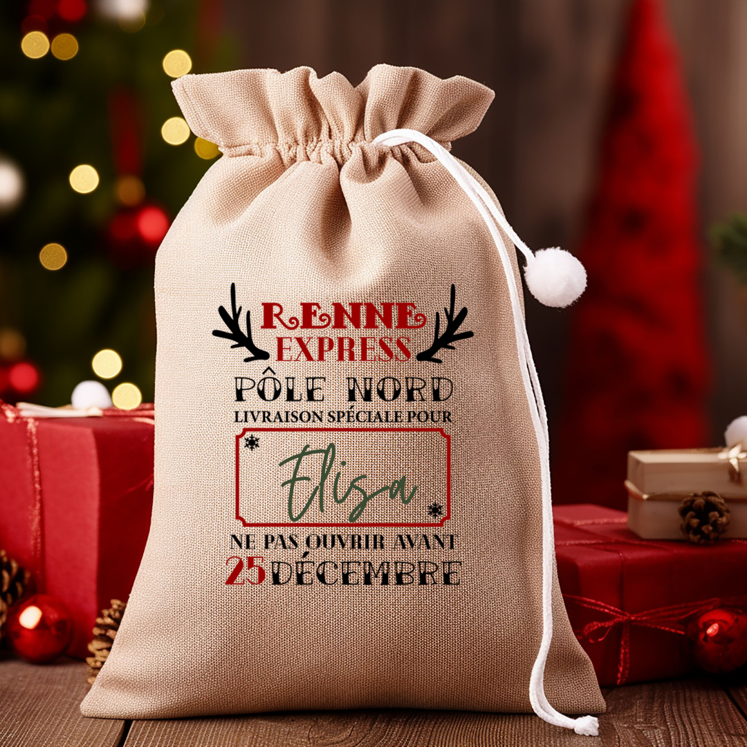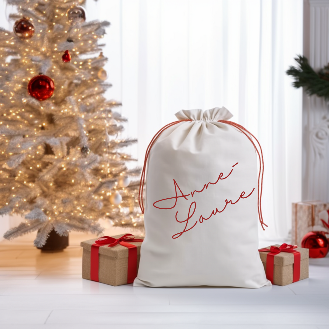 Marre de faire des paquets cadeaux ? Optez pour la hotte personnalisée ! En plus d’être jolies, elles sont aussi écologiques. Récupérez les et vous pourrez vous en servir à nouveau l’année prochaine.